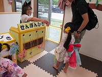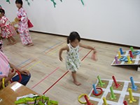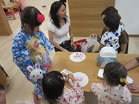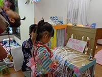 スクルドエンジェル保育園あじま園の第2回夏まつりが開かれました。可愛い子ども達が浴衣や甚平姿で登園し、お化け屋敷や千本引き、製作等色々なコーナーをスタンプラリー型式で楽しみました。