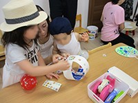 うちわ作り(製作)・輪投げ・魚釣り・ヨーヨー釣り・カレーライス試食のコーナーがあり、どこも盛況でした。景品おみやげは、職員の手作りで喜ばれました。